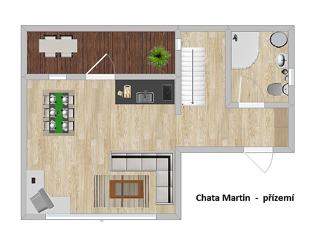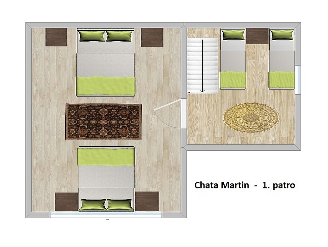 Chata „MARTIN“ je 6-lůžková luxusní patrová chata 92 m2.